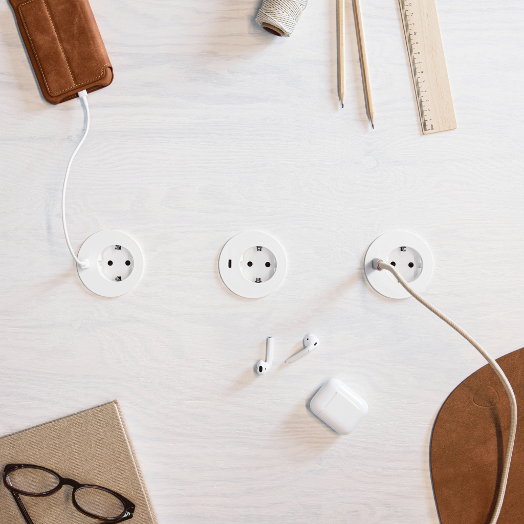 Med det i åtanke utvecklade vi Powerdot – en elegant liten cirkel av el som kan monteras nästan var som helst. Integrera Powerdot i din soffa, under fåtöljen eller i bordet. Möjligheterna är oändliga. Du bestämmer var och hur du vill vara uppkopplad.